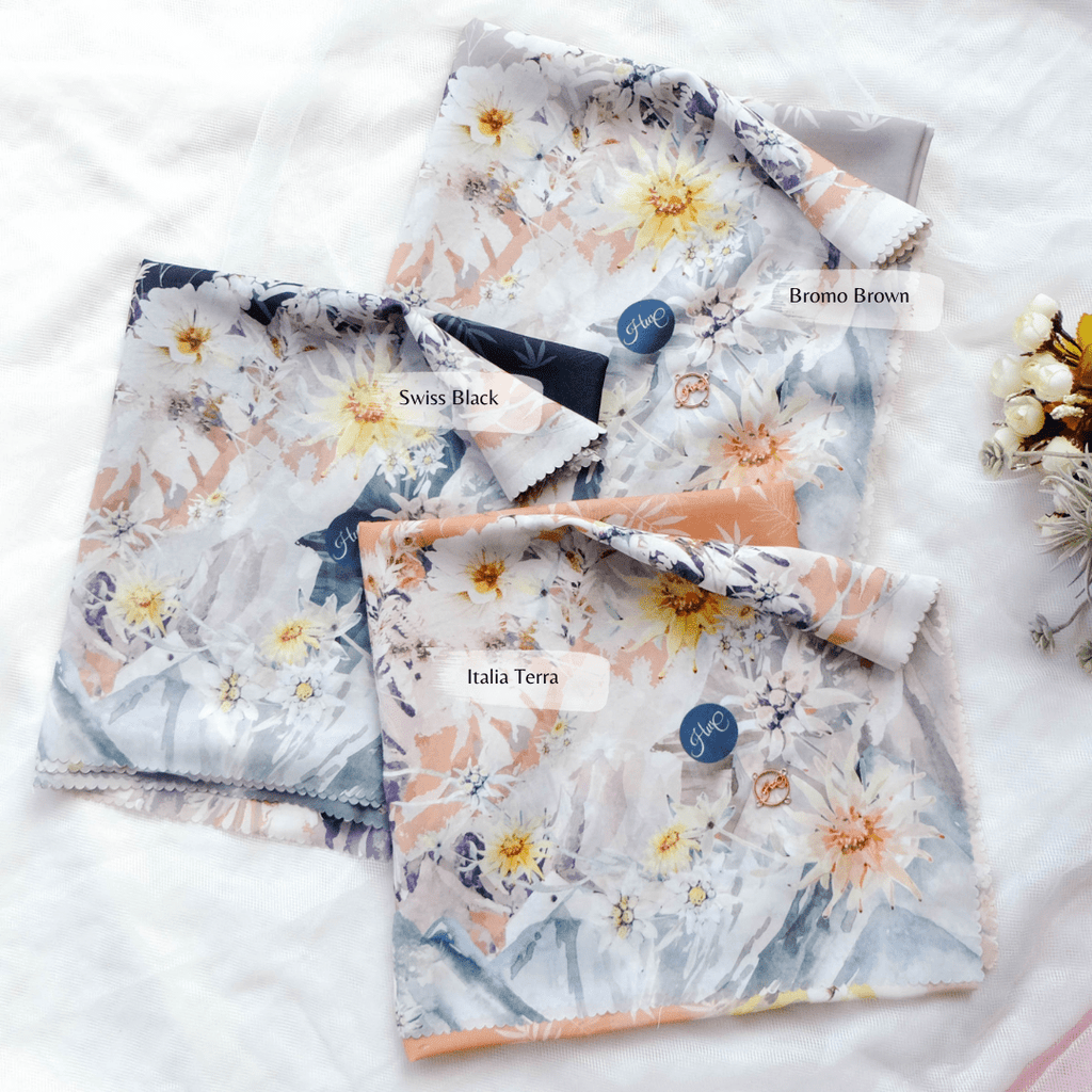 Hijab segiempat premium dengan motif terinspirasi dari keindahan nuansa pegunungan dan panorama dataran tinggi dengan nuansa bunga khas yaitu bunga Edelweiss yang melambangkan kesetiaan dan keabadian. Diproduksi dengan teknologi printing watercolor style khas @hijabwanitacantik seperti lukisan mewah. Cantik dan syahdu banget ! dijamin membuat penampilan kamu makin berkesan!