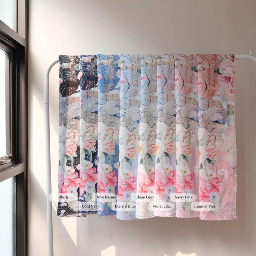 Hijab printing dengan motif exclusive Florence Series yang terinspirasi dari taman bunga Eropa yang bernuansa klasik yang memukau. Dengan perpaduan warna-warna pastel yang lembut serta motif bunga yang sangat beragam menggambarkan rangkaian aneka bunga yang tertata cantik di taman.