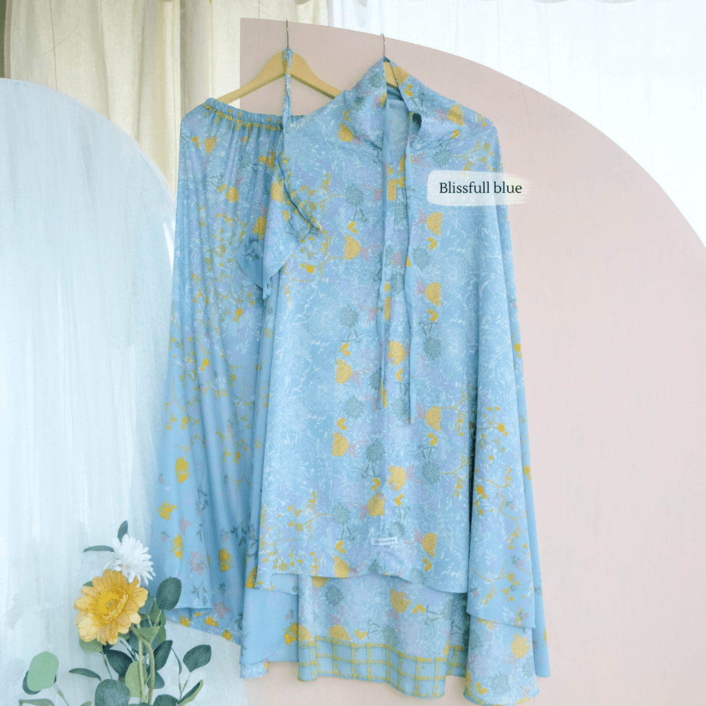 Hijabwanitacantik - Mukena Daffodil Prayer Set Printing Bahan silky soft cotton