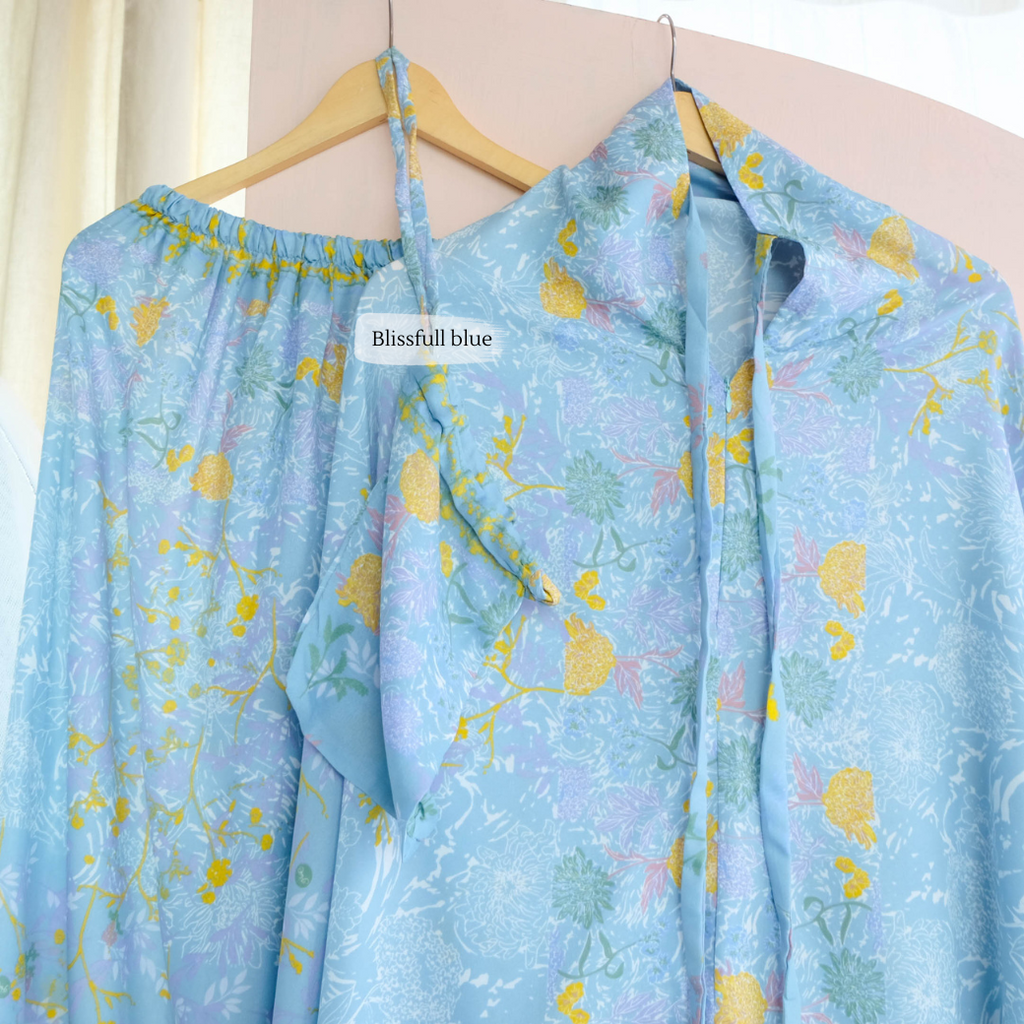 Mukena silk dengan motif super cantik yang terinspirasi dari bunga daffodil dipadu dengan ornamen bunga yang elegan. Warna cerah dan bentuk yang elegan memberikan kesan kegembiraan. Dijamin membuat hari-harimu semakin manis dan penuh kegembiraan!
