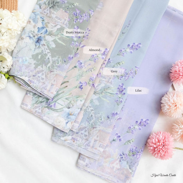 Terinspirasi dari keindahan bunga lavender. Dipadu dengan nuansa rumah-rumah pedesaan yang tenang dan memukau. Teknologi printing watercolor style khas @hijabwanitacantik seperti lukisan mewah. Cantik dan syahdu banget ! dijamin membuat penampilan kamu makin berkesan!