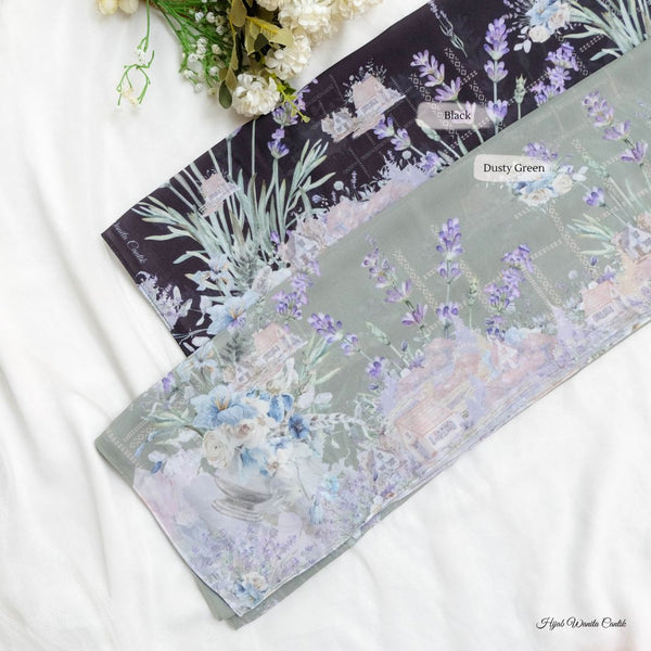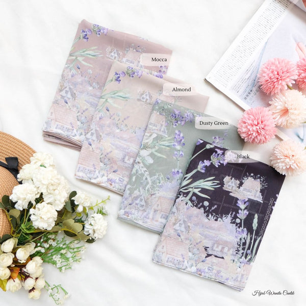 Terinspirasi dari keindahan bunga lavender. Dipadu dengan nuansa rumah-rumah pedesaan yang tenang dan memukau. Teknologi printing watercolor style khas @hijabwanitacantik seperti lukisan mewah. Cantik dan syahdu banget ! dijamin membuat penampilan kamu makin berkesan!