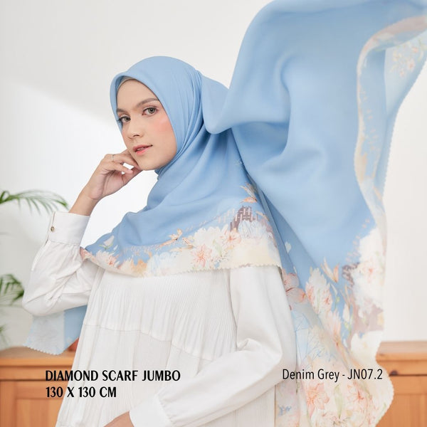 [ BUY 3 GET 1 FREE HIJAB ] Diamond Scarf JUMBO - JN07.2 Denim Grey