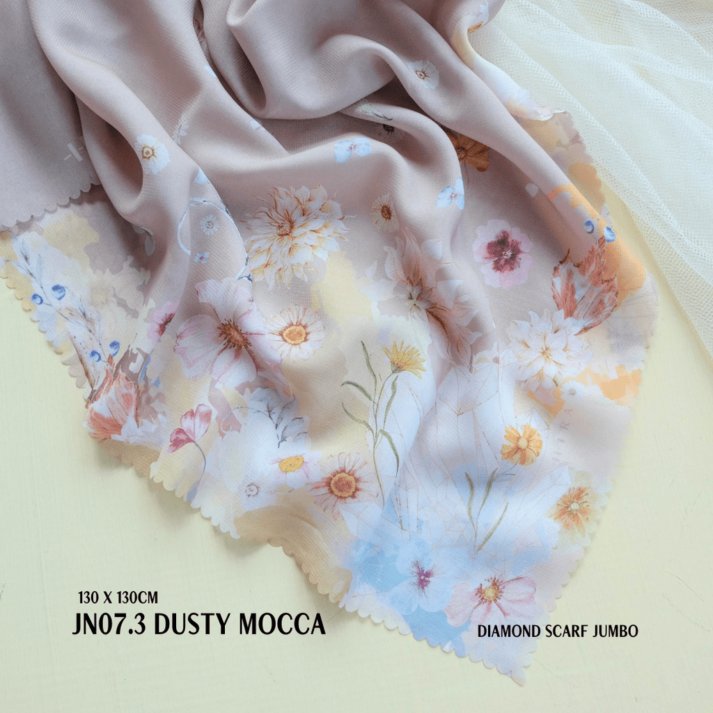 Hijab printing dengan motif exclusive Diamond Series yang terinspirasi dari dengan dekorasi klasik yang memukau. Dengan perpaduan warna-warna pastel yang lembut serta motif bunga yang sangat beragam menggambarkan rangkaian aneka bunga yang tertata cantik di taman. Pada bagian tengah scarf terdapat ornamen-ornamen abstrak dengan warna yang menyatu dengan warna dasar, sehingga memberi kesan clean dan elegan saat dipakai.