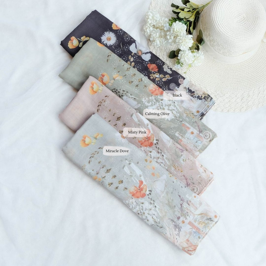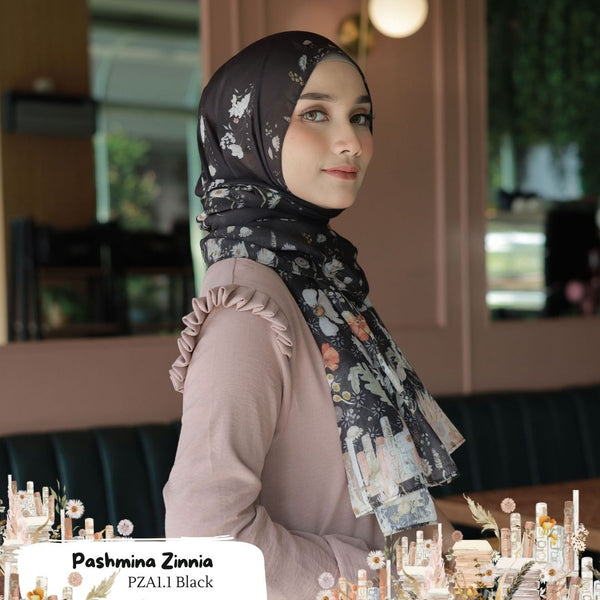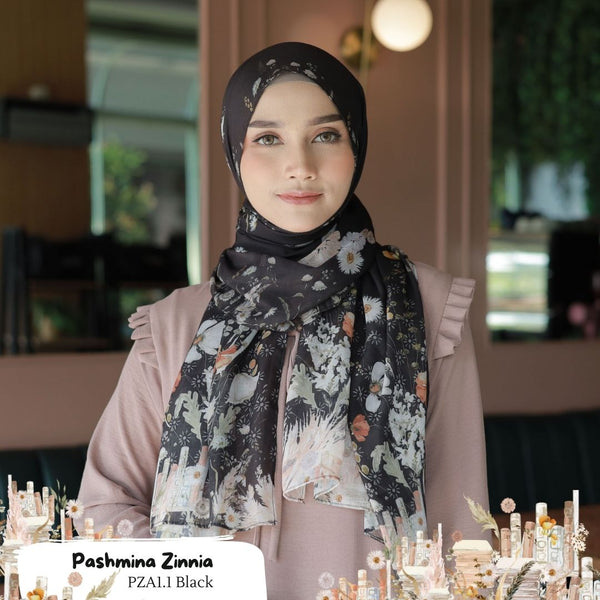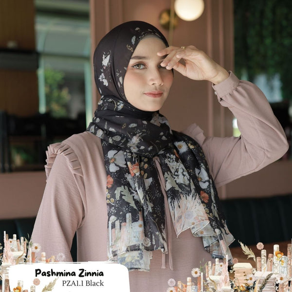 Pashmina printing desain Zinnia Series ORIGINAL khas Hijab Wanita Cantik