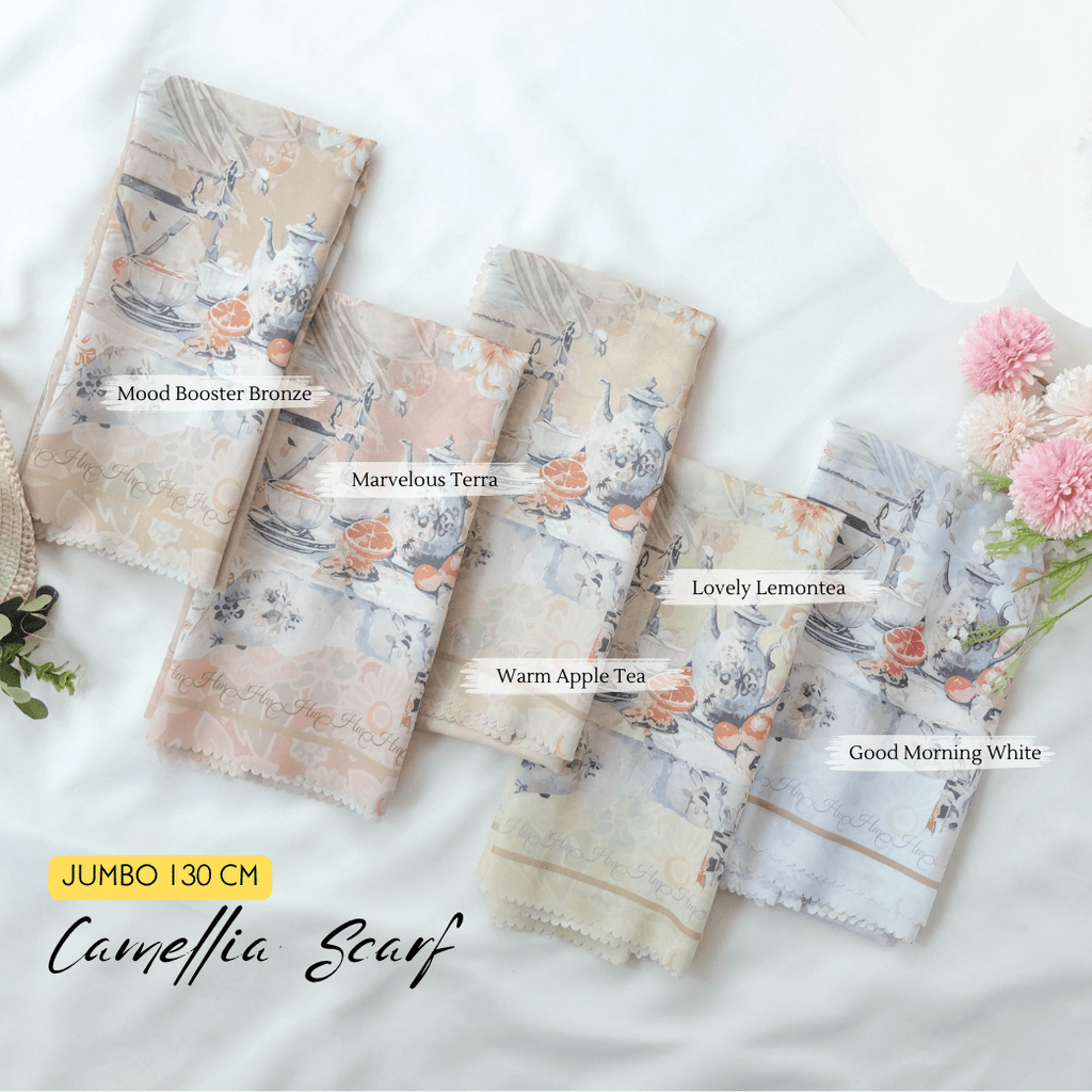 Hijab printing dengan motif exclusive yang terinspirasi dari Camellia sinensis atau tanaman teh, yang memberi nuansa kehangatan dan ketenangan. Motif bunga-bunga extra mewah dengan detail seperti lukisan! Dipadu dengan motif gelas cangkir klasik serta warna-warna yang soft memberikan penampilanmu semakin cantik & percaya diri