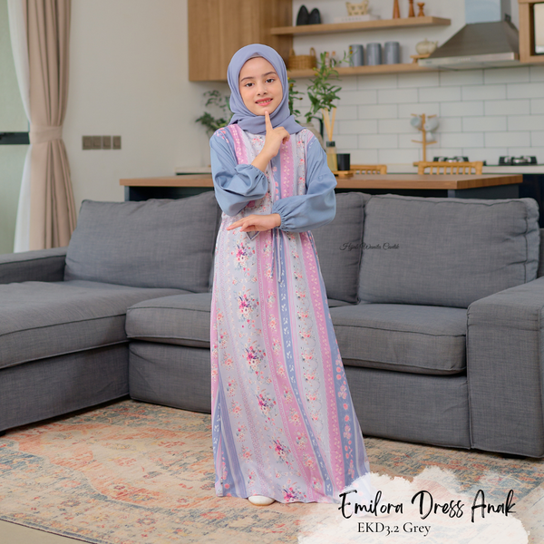 [ READY STOCK ] CLEARANCE SALE Emilora Dress Anak Custom - CDR3.2 Grey