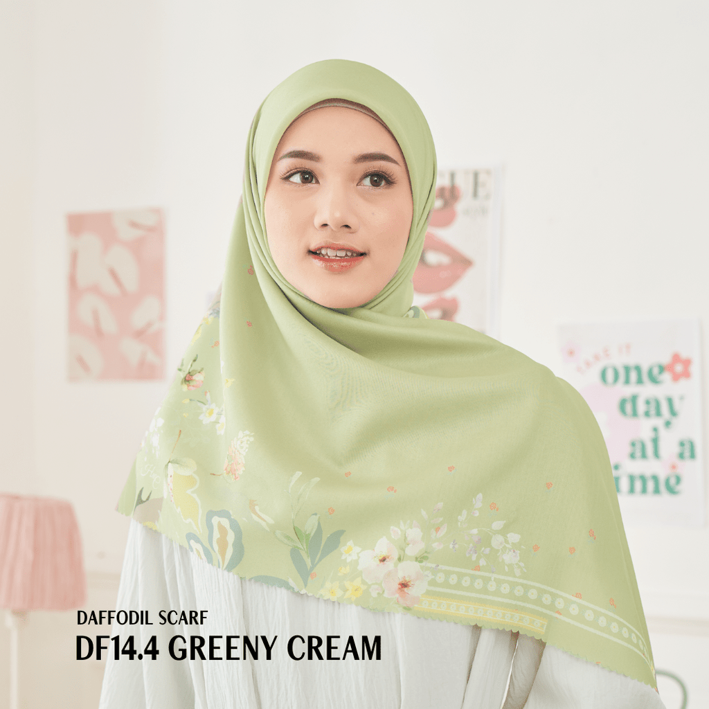 [ BUY 3 GET 1 FREE HIJAB ] Daffodil Scarf - DF14.4 Greeny Cream