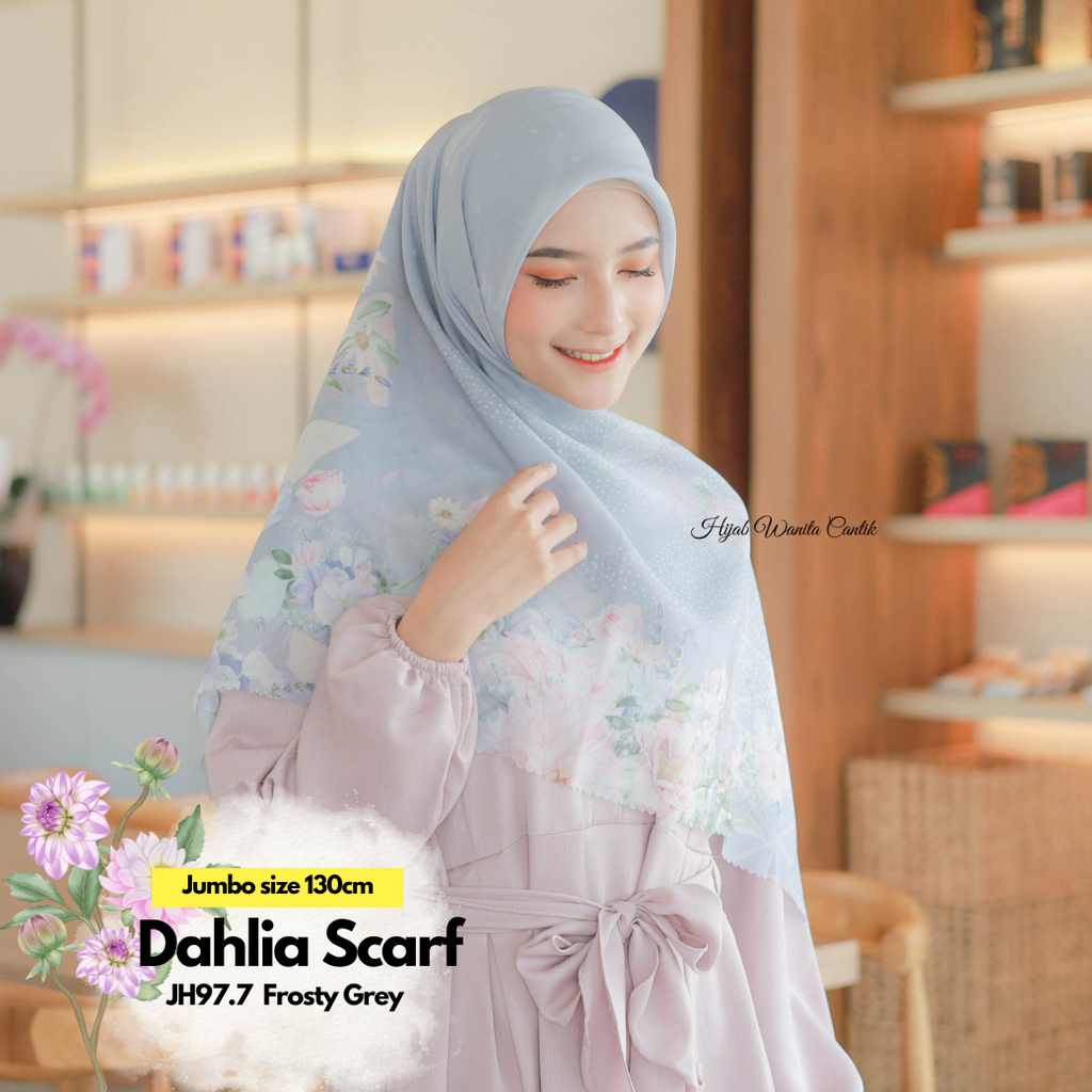Hijab printing dengan motif exclusive Dahlia series. Bunga Dahlia, sebagai simbol keindahan dan kekuatan untuk selalu mekar meski di tengah tantangan. Setiap helainya diprint menggunakan teknologi printing watercolor style khas @hijabwanitacantik seperti lukisan mewah. Cantik dan syahdu banget ! dijamin membuat penampilan kamu makin berkesan!