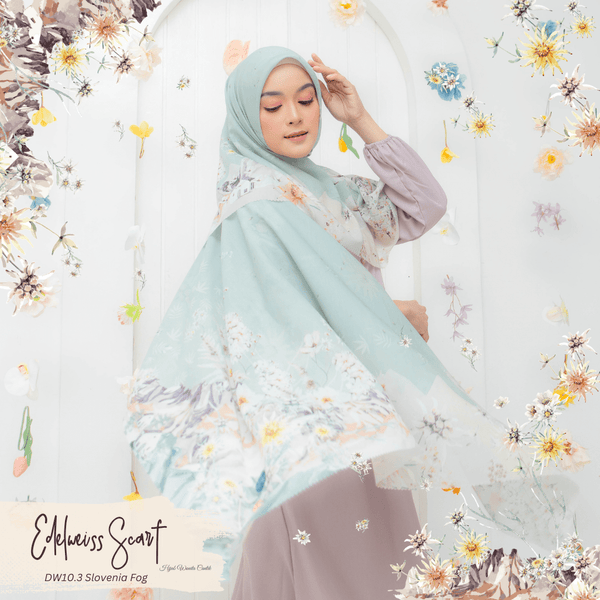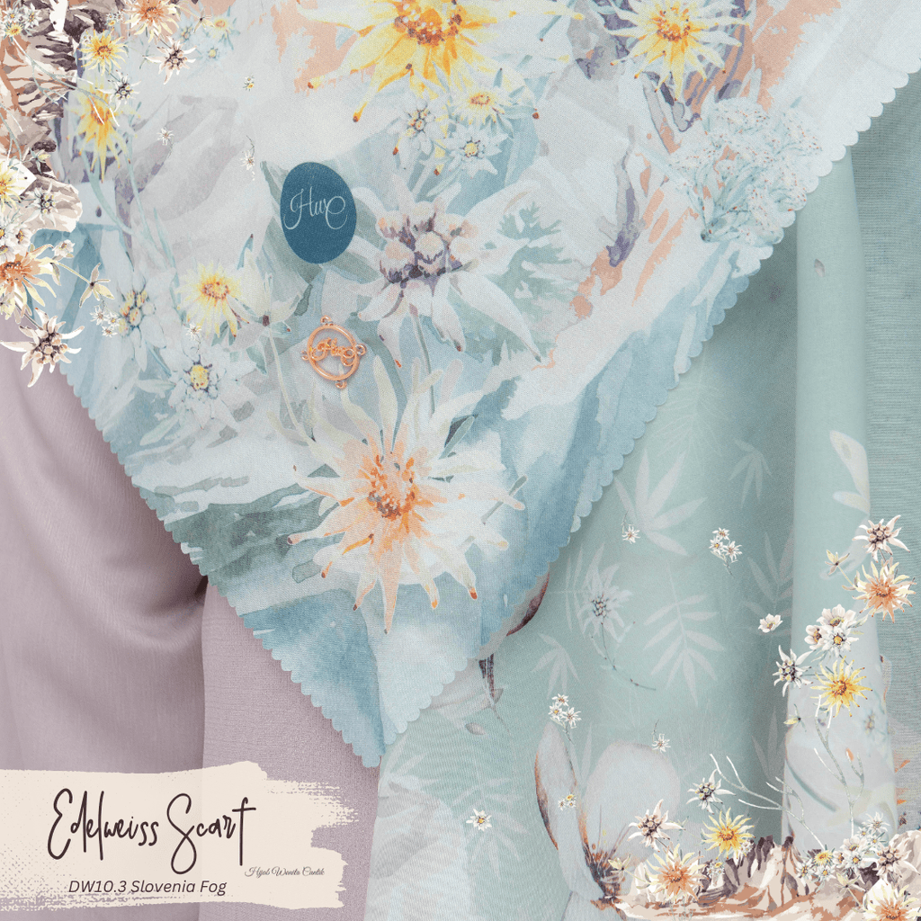 Hijab segiempat premium dengan motif terinspirasi dari keindahan nuansa pegunungan dan panorama dataran tinggi dengan nuansa bunga khas yaitu bunga Edelweiss yang melambangkan kesetiaan dan keabadian. Diproduksi dengan teknologi printing watercolor style khas @hijabwanitacantik seperti lukisan mewah. Cantik dan syahdu banget ! dijamin membuat penampilan kamu makin berkesan!