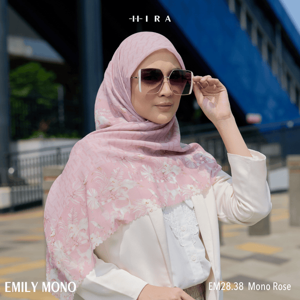 Emily series kini hadir dengan pattern signature monogram Hira. Hijab printing dengan motif exclusive yang terinspirasi dari tema vintage garden yaitu nuansa keindahan bunga-bunga di taman dengan dekorasi klasik yang memukau dipadu dengan pita coquette yang trendy. Pada bagian tengah scarf terdapat monogram logo Hira, sangat elegan dan timeless.