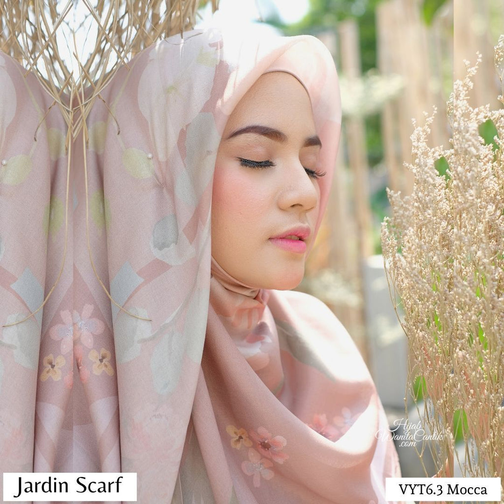 Hijab segiempat premium dengan motif exclusive yang terinspirasi dari taman kota. Jardin artinya taman. Motif bunga dan bentukan geometris dipadu dengan warna yang lembut memberi kesan yang sangat cantik. Bahan Rocky Voal Premium, terbaru! Lebih tebal dan ada variasi tekstur anyaman unik. Ukuran 110x110 cm, Finishing lasercut oval desain baru dijamin suka deh!