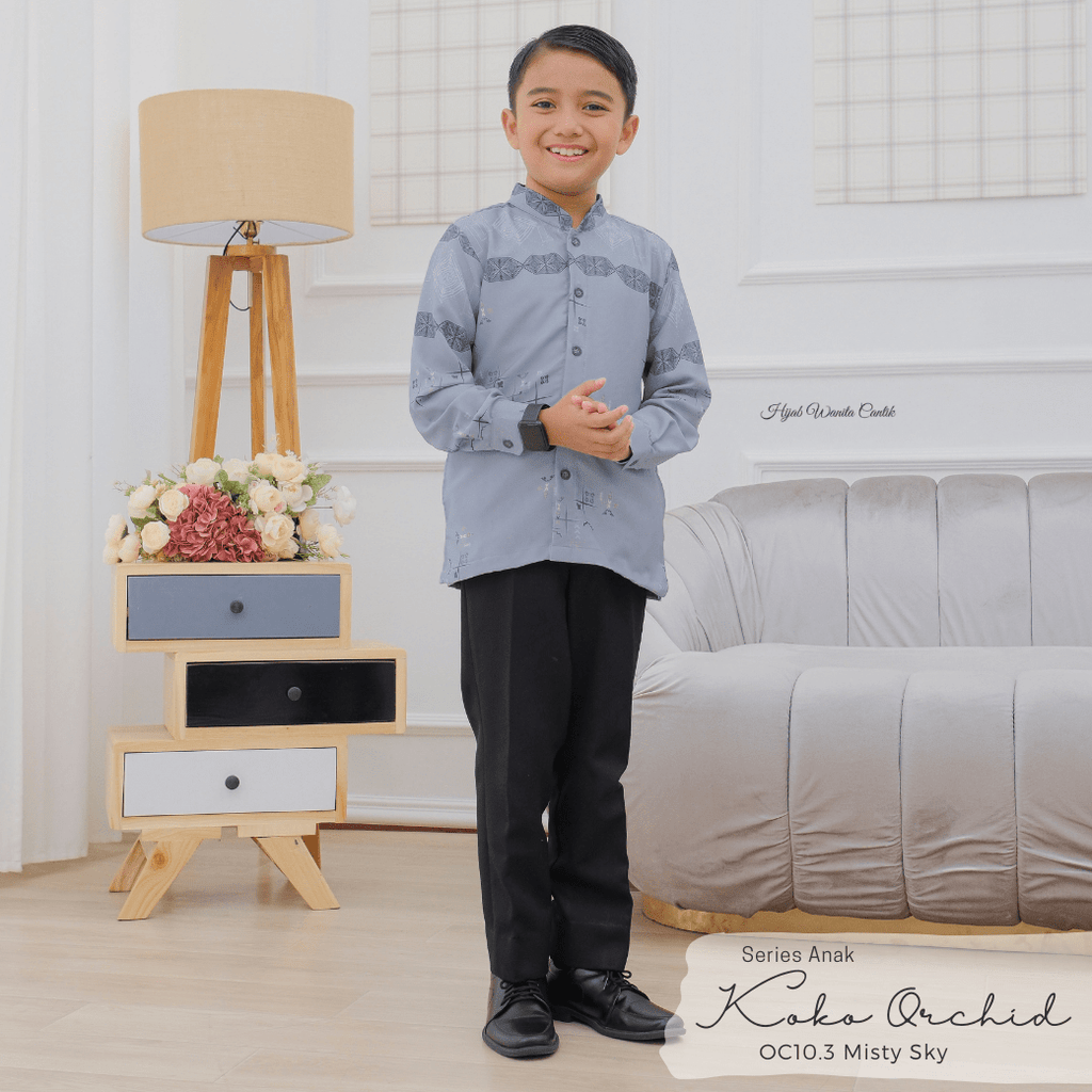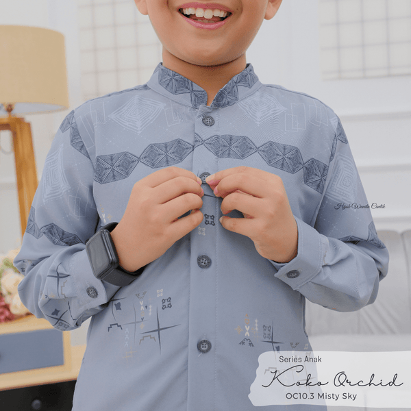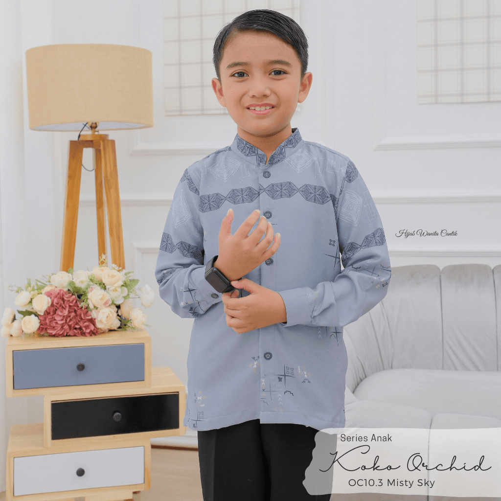 Baju Koko dengan cutting nyaman dan bahan katun berserat yang berkualitas bagus. Memberi kesan elegan dan simple look. Bahan katun kemeja yang sangat adem sehingga nyaman dipakai seharian. Dilengkapi motif signature Orchid Series yang tidak terlaulu ramai dan warna senada, menambah kekompakan keluarga dengan memakai Family Set Orchid Series.