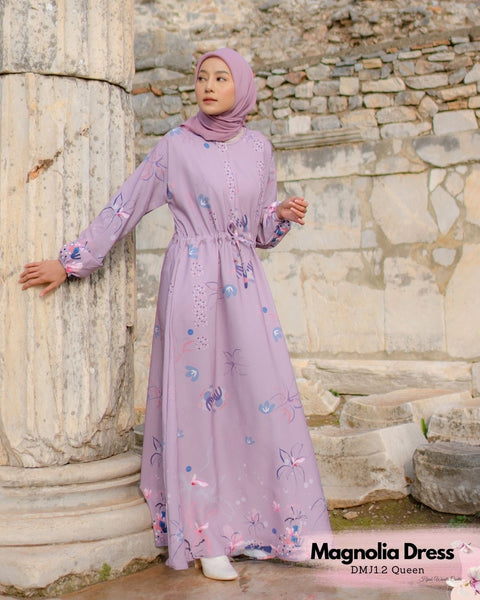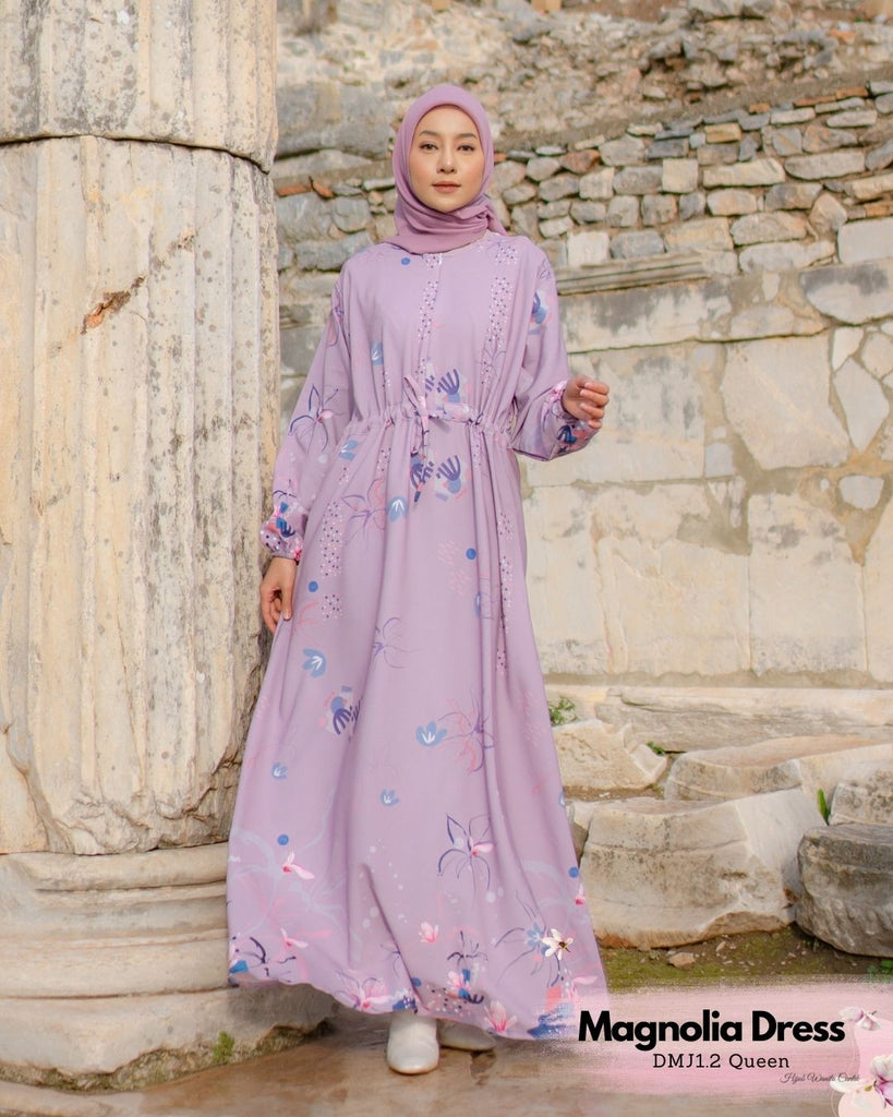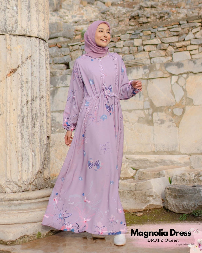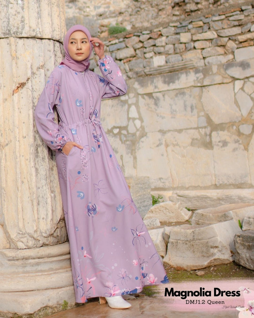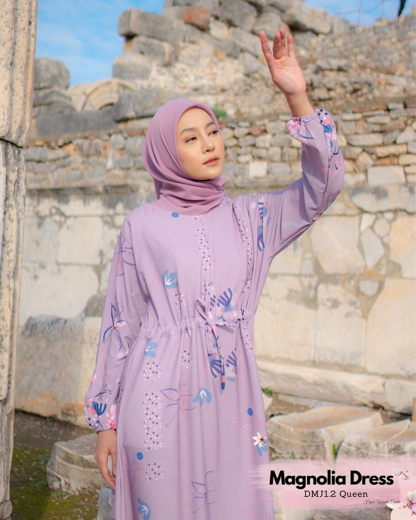 Dress cantik dengan motif Magnolia Series yang terinspirasi dari keindahan bunga magnolia dipadu dengan ornamen abstrak simple & cute. Menggunakan teknologi digital printing yang memberi rentang warna yang sangat bagus dan elegan.