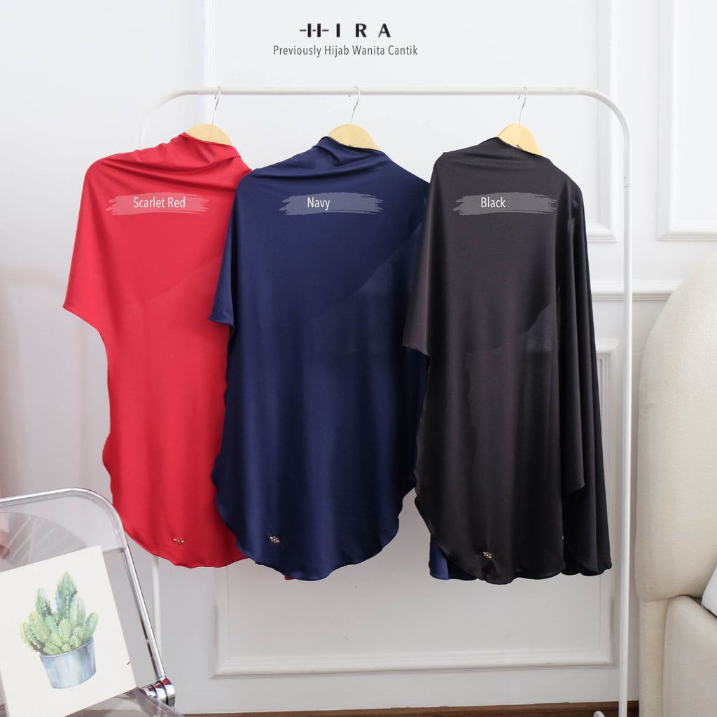 Pashmina instan dengan desain oval yang bisa menutup area dada & sebagian punggung.