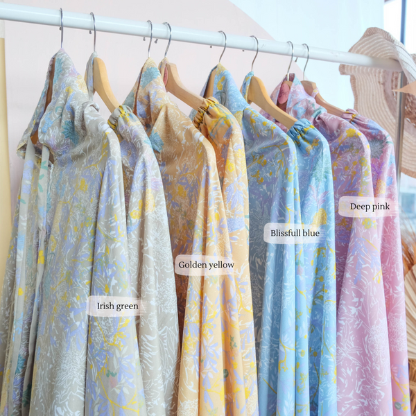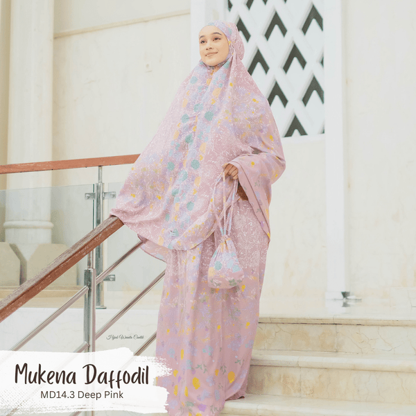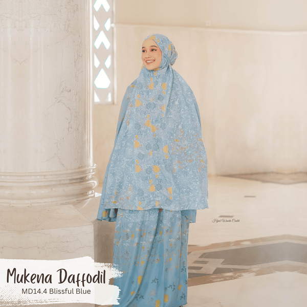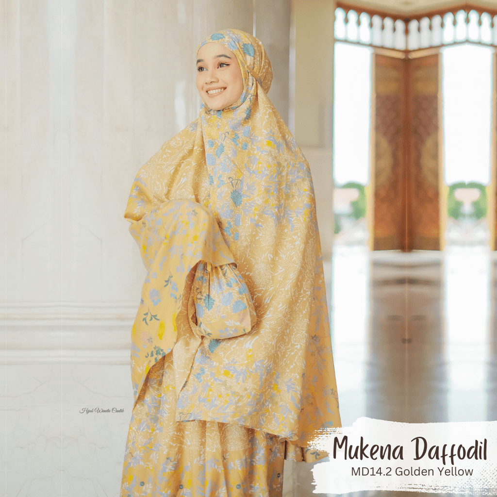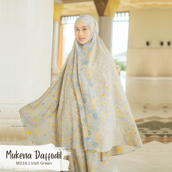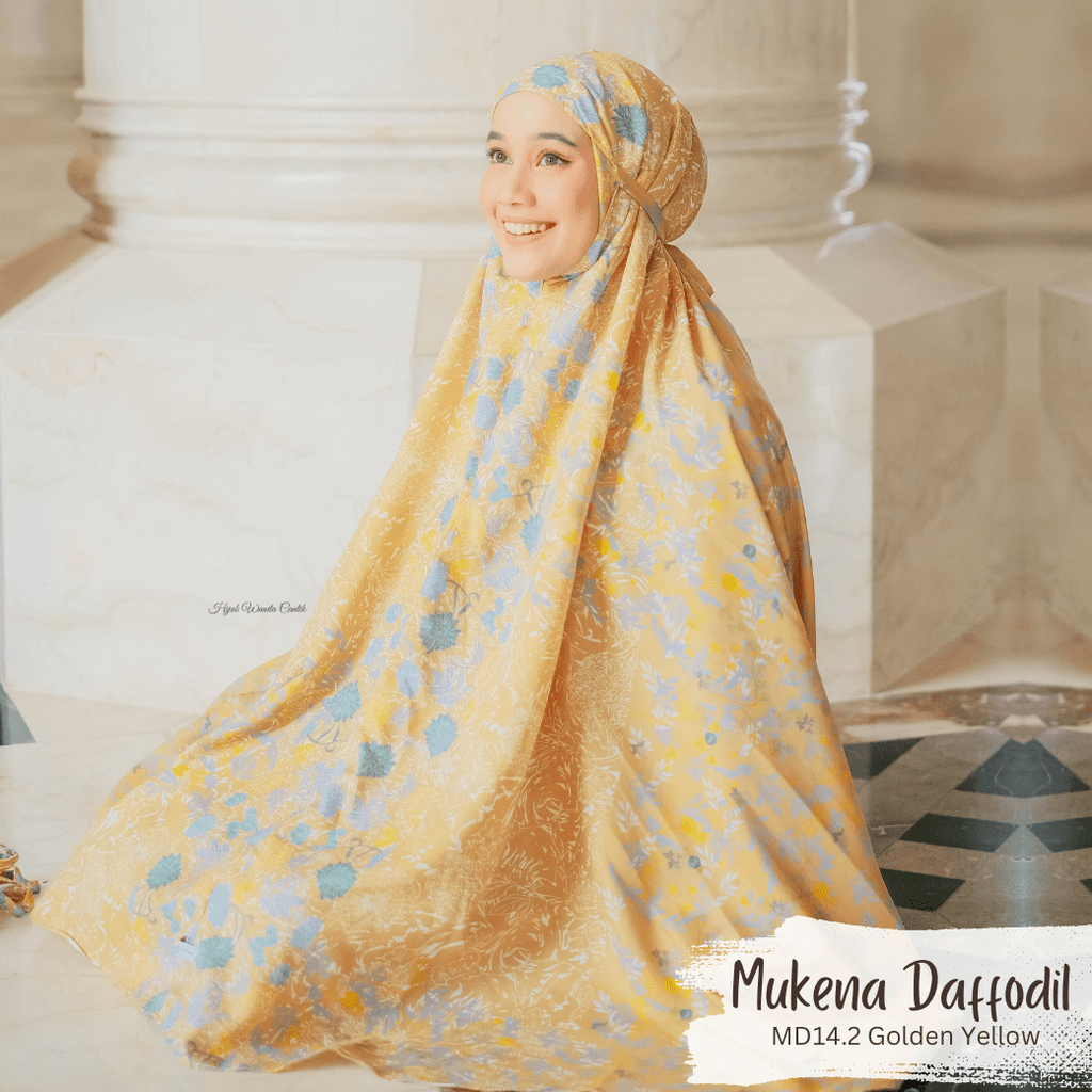 Mukena silk dengan motif super cantik yang terinspirasi dari bunga daffodil dipadu dengan ornamen bunga yang elegan. Warna cerah dan bentuk yang elegan memberikan kesan kegembiraan. Dijamin membuat hari-harimu semakin manis dan penuh kegembiraan!
