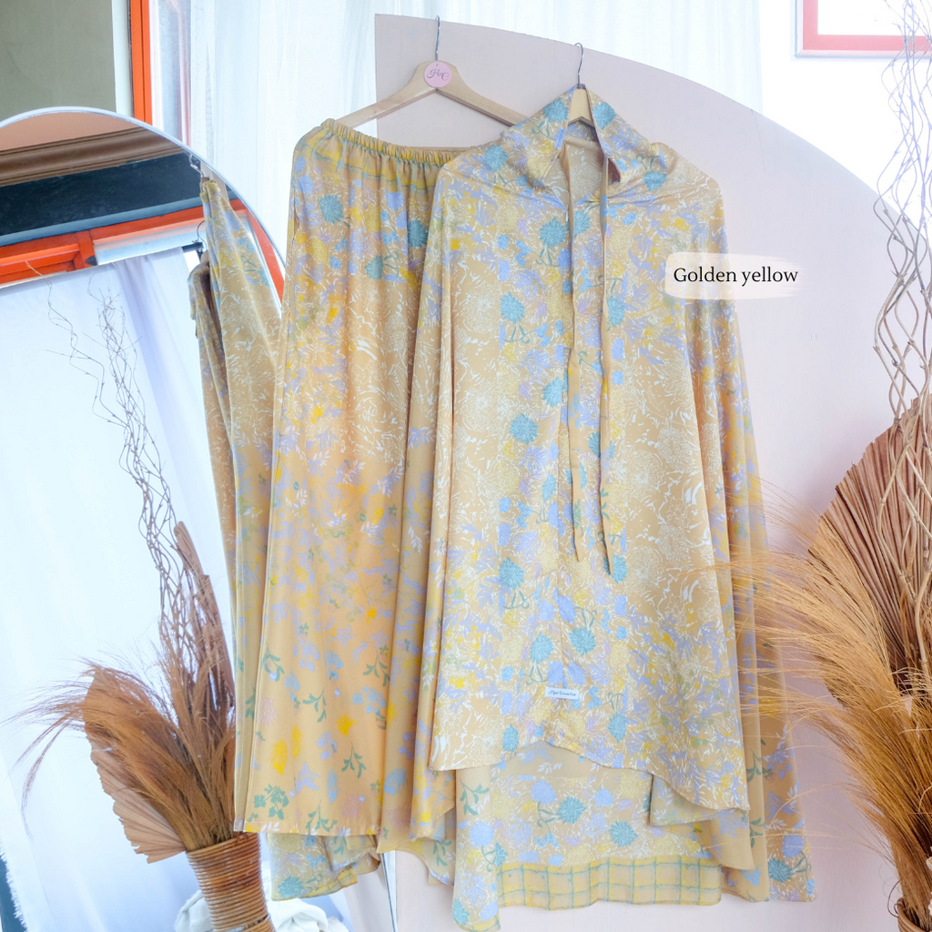 Hijabwanitacantik - Mukena Daffodil Prayer Set Printing Bahan silky soft cotton