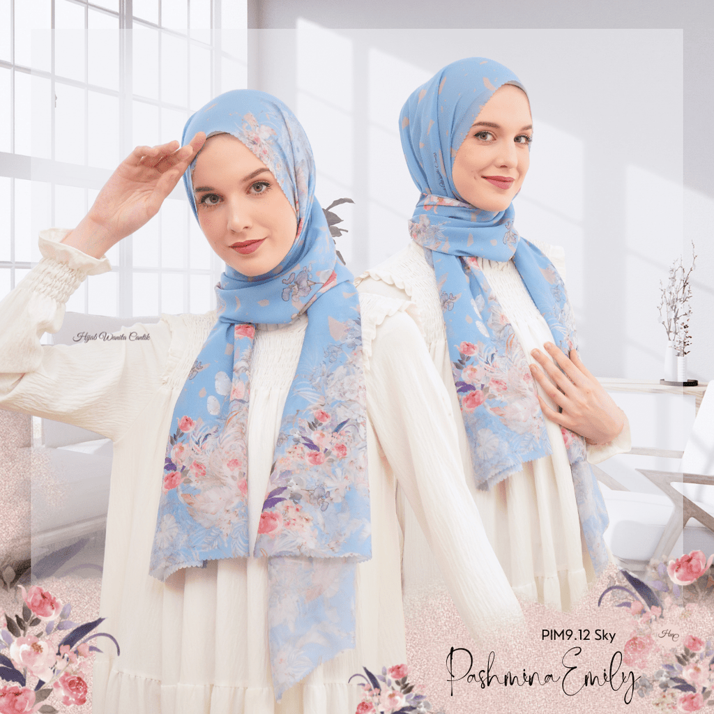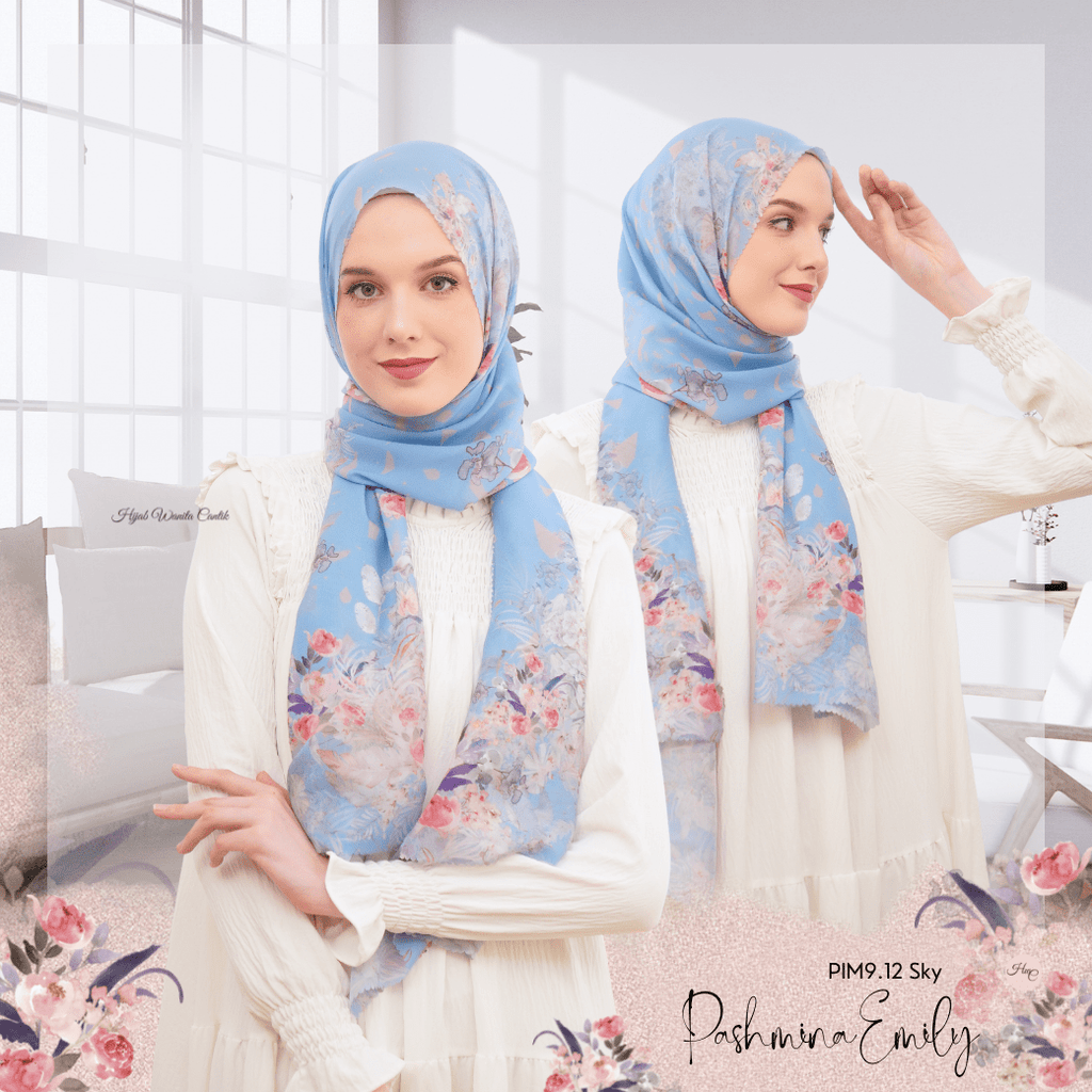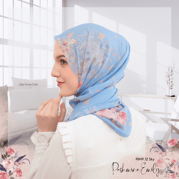 Hijab printing dengan motif exclusive Emily Series yang terinspirasi dari tema vintage garden yaitu nuansa keindahan bunga-bunga di taman dengan dekorasi klasik yang memukau. Dengan perpaduan warna-warna pastel yang lembut serta motif bunga yang sangat beragam menggambarkan rangkaian aneka bunga yang tertata cantik di taman. Pada bagian tengah scarf terdapat ornamen-ornamen abstrak dengan warna yang menyatu dengan warna dasar, sehingga memberi kesan clean dan elegan saat dipakai.