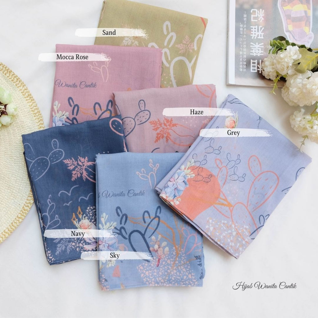 Hijab printing motif yang yang terinspirasi dari nuansa Gurun Sahara yang lapang & syahdu. Dengan motif kaktus yang simpel dan manis dan warna - warna pastel gampang banget di mix & match dengan Outfit favoritmu !