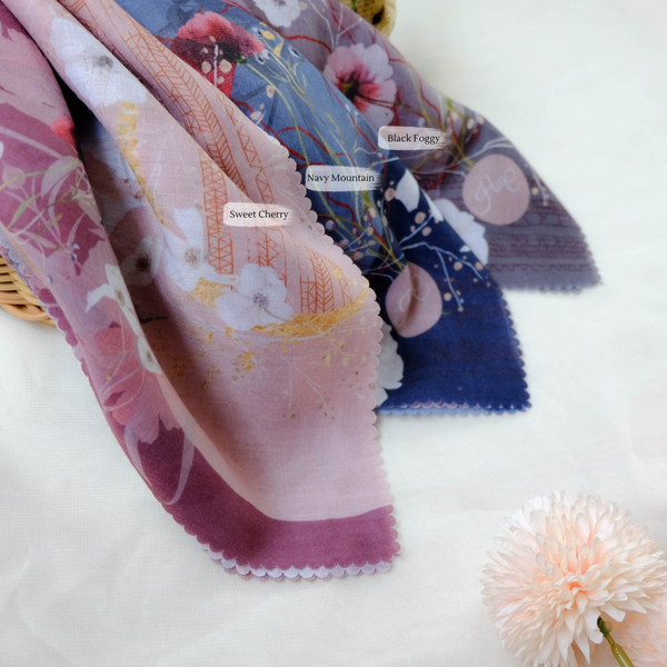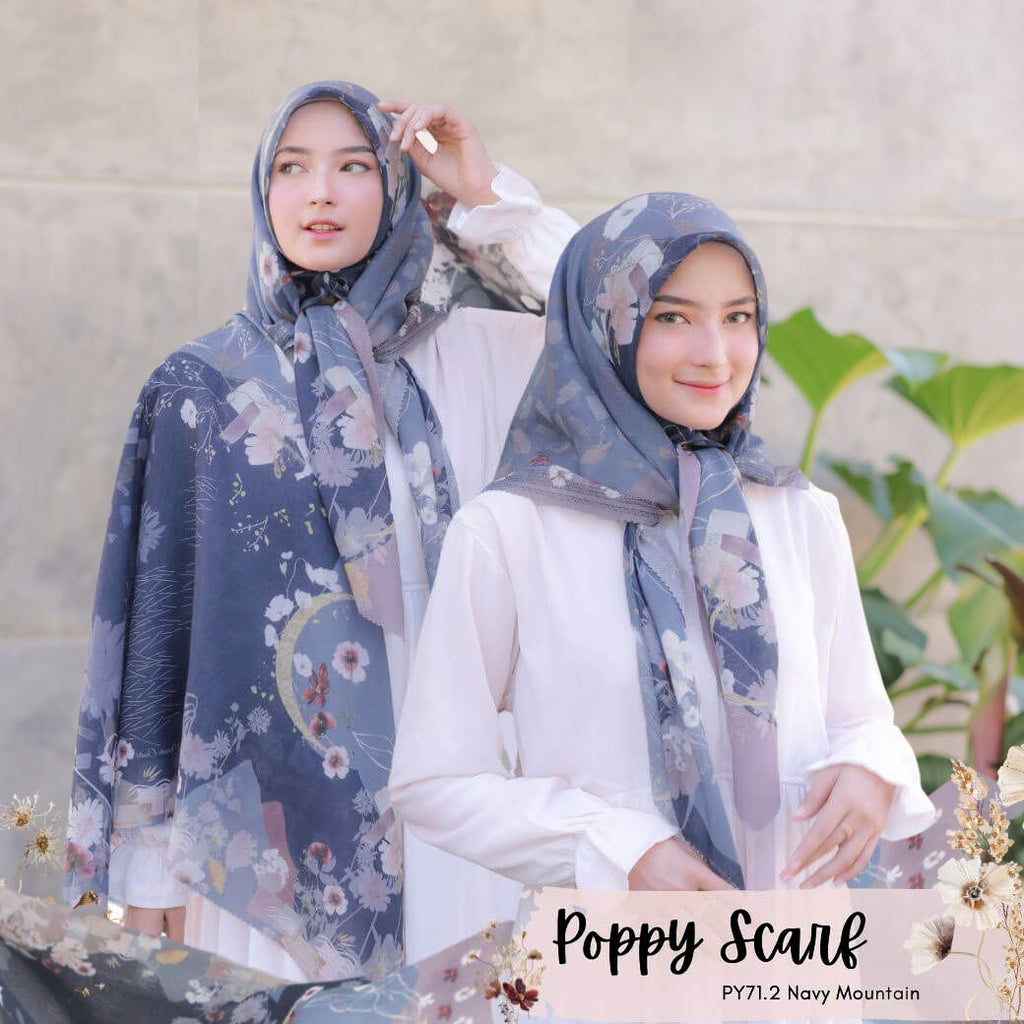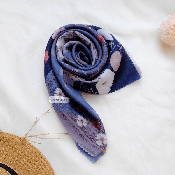 [ BUY 3 GET 1 FREE HIJAB ] Segiempat Poppy Scarf - PY71.2 Navy Mountain