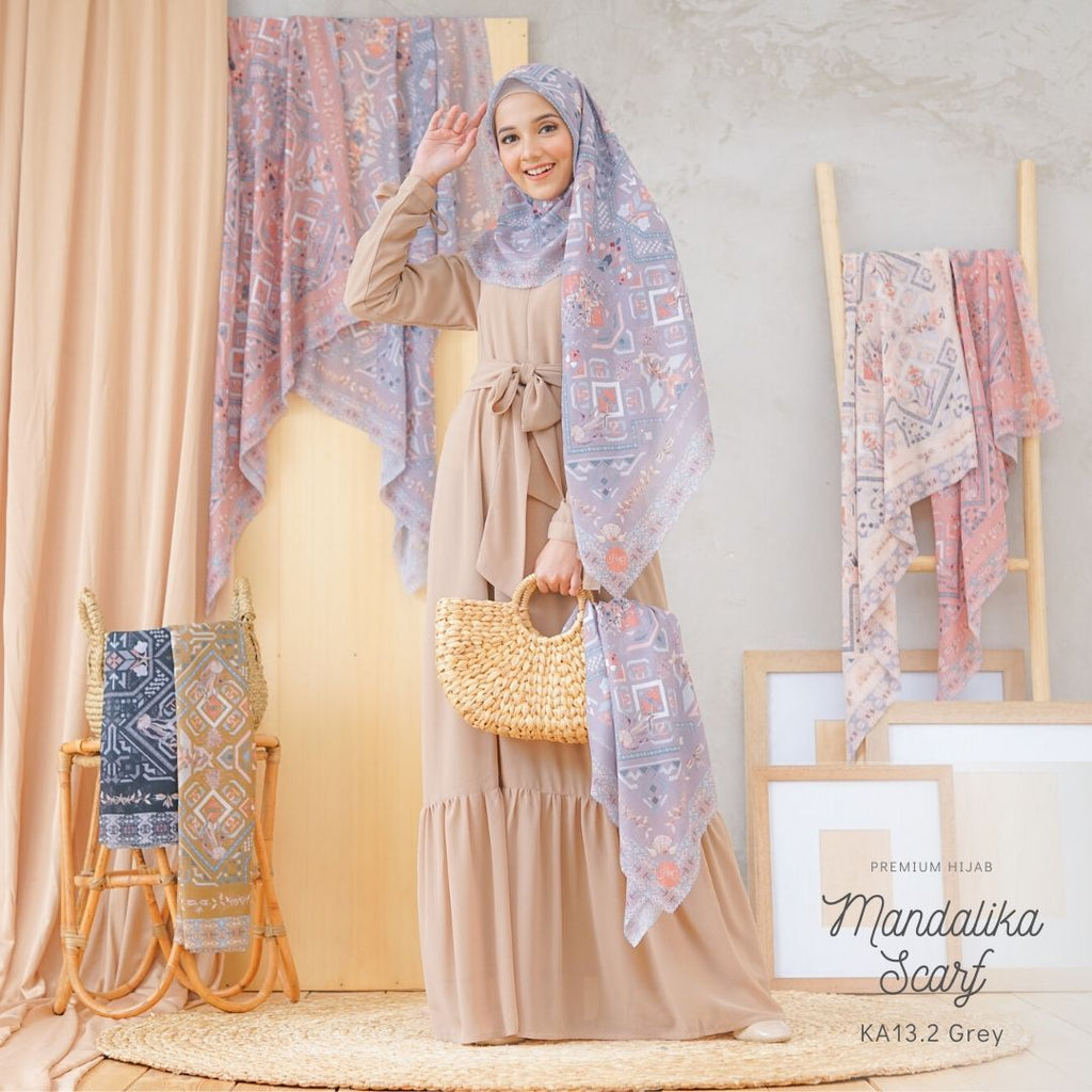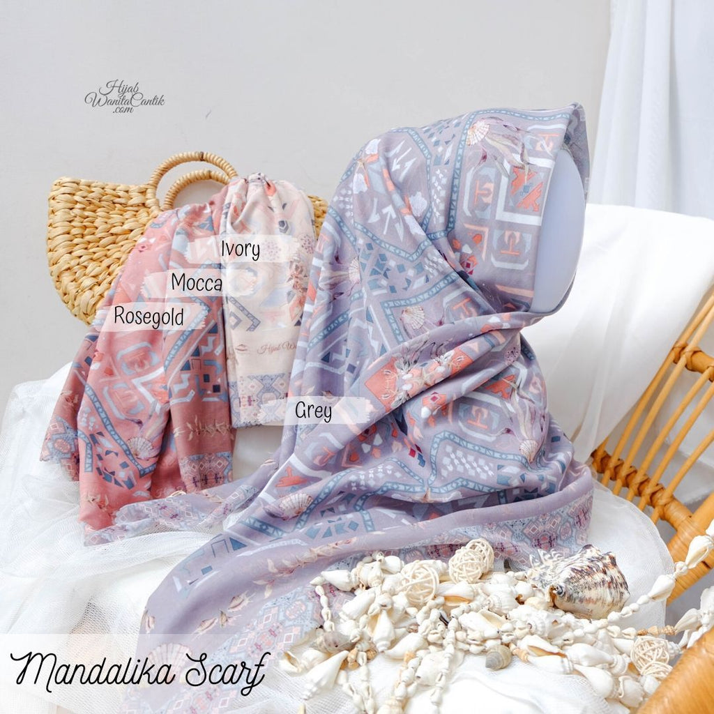 Segiempat Premium dengan motif yang sangat cantik yang terinspirasi dari keindahan Pantai Mandalika serta dipadu dengan motif artistik songket tenun Lombok. Desain ini didominasi warna-warna yang earth tone yang netral dan elegan. Terdapat ornamen khas watercolor bernuansa keindahan laut seperti kerang dan rumput laut yang didesain sedemikian cantik. Perpaduan warna & motif yang unik dan khas Hijab Wanita Cantik ini akan membuat penampilanmu makin berkesan.