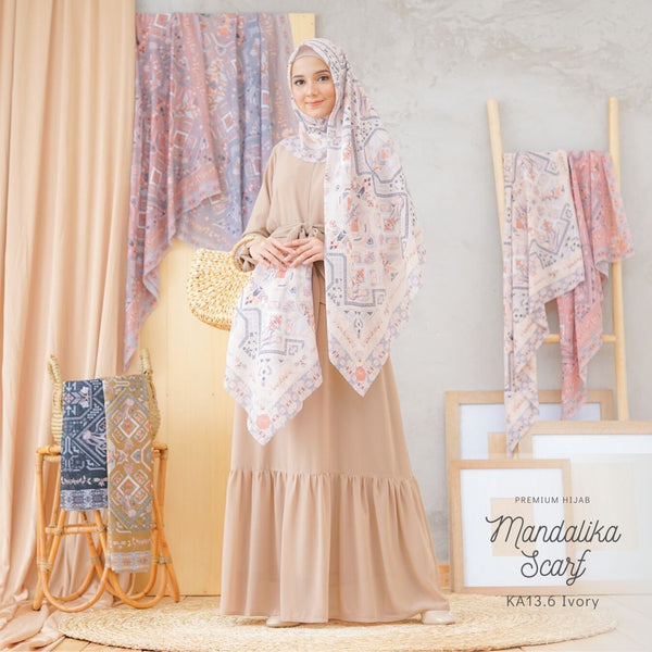 Segiempat Premium dengan motif yang sangat cantik yang terinspirasi dari keindahan Pantai Mandalika serta dipadu dengan motif artistik songket tenun Lombok. Desain ini didominasi warna-warna yang earth tone yang netral dan elegan. Terdapat ornamen khas watercolor bernuansa keindahan laut seperti kerang dan rumput laut yang didesain sedemikian cantik. Perpaduan warna & motif yang unik dan khas Hijab Wanita Cantik ini akan membuat penampilanmu makin berkesan.