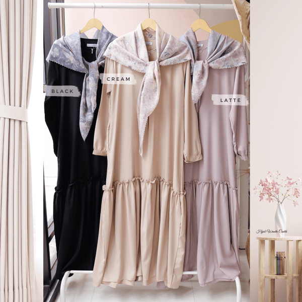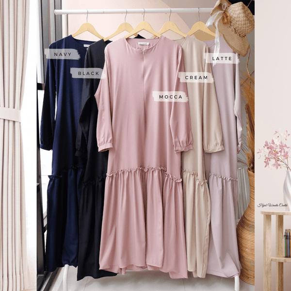Dress Basic dengan bahan Pasteline Crepe dengan serat bahan lembut adem dan nyaman, cutting basic dress yang simple dan elegan cocok banget dipadu dengan hijab motif by @hijabwanitacantik 😍