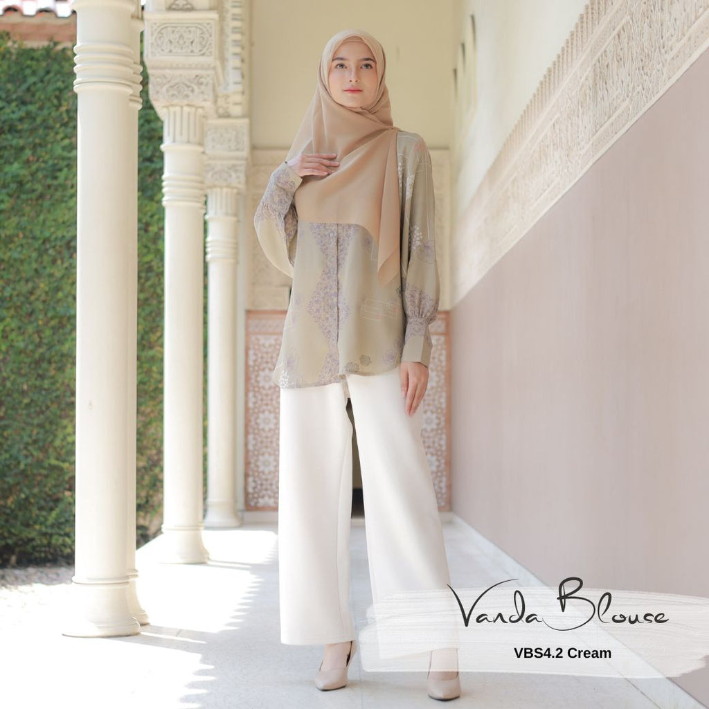 Bahan polycrepe yang ringan dan nyaman, yang diprint exclusive motif signature hijabwanitacantik.
