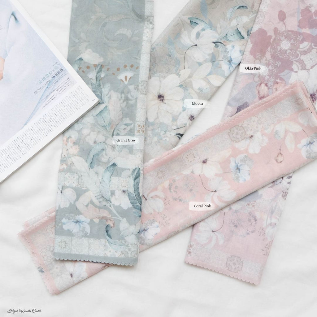 Hijab motif printing super cantik dengan motif yang terinspirasi dari bunga Azalea. Dengan 10 warna-warna basic dan soft semuanya lengkap! Perpaduan bunga-bunga dengan ornamen geometris berwarna senada dan tidak terlalu mencolok, memberi kesan cantik, kalem, dan elegan banget!