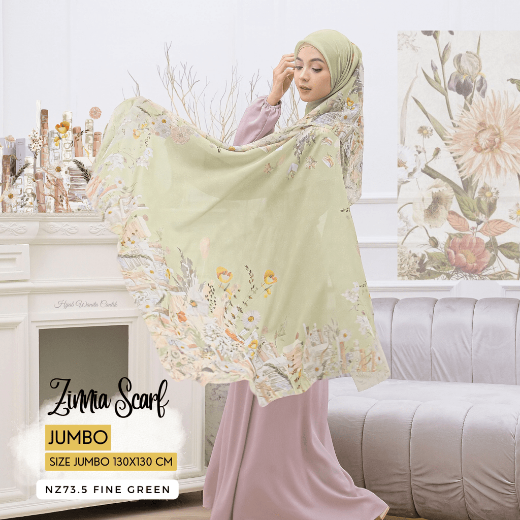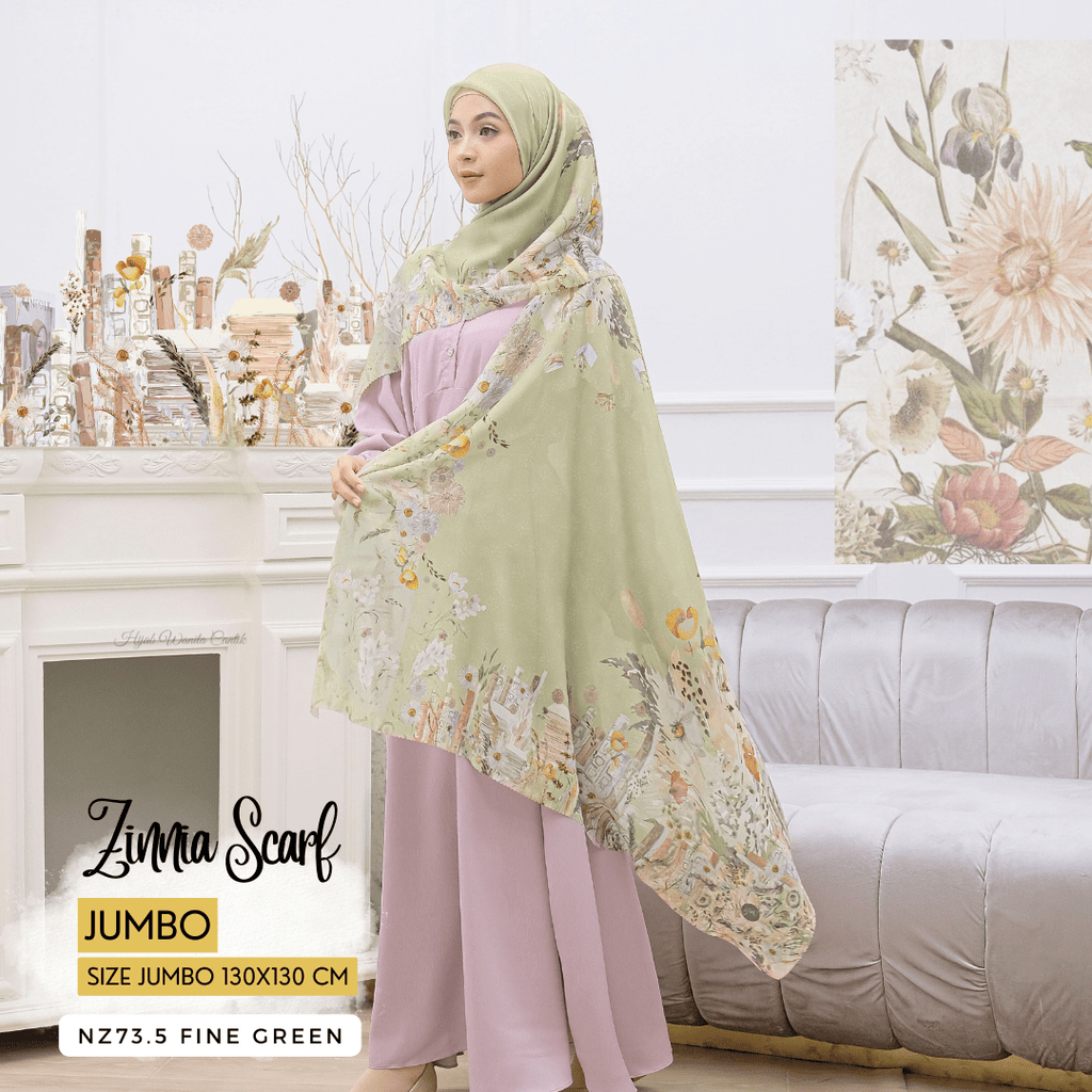 [ BUY 3 GET 1 FREE HIJAB ] Zinnia Scarf Jumbo - NZ73.5 Fine Green